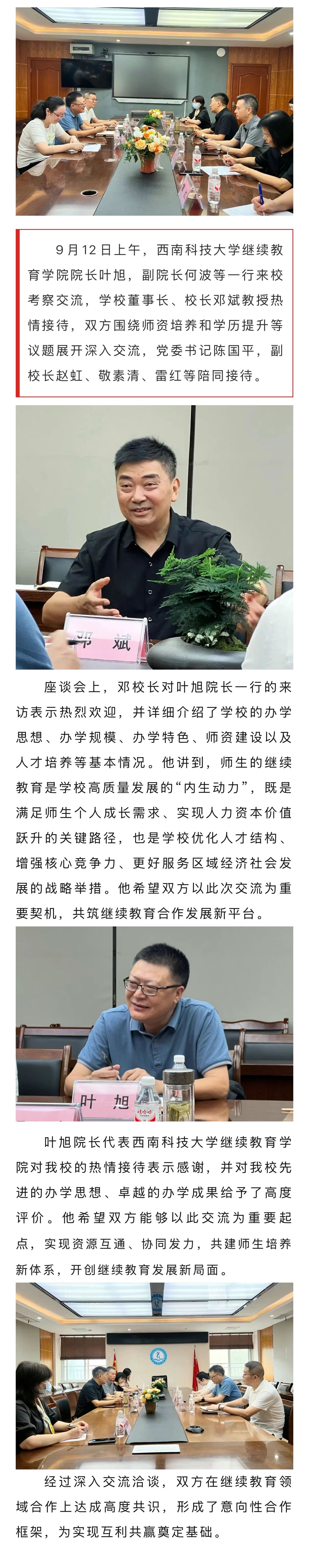 校际交流合作 | 西南科技大学继续教育学院叶旭一行来校考察交流