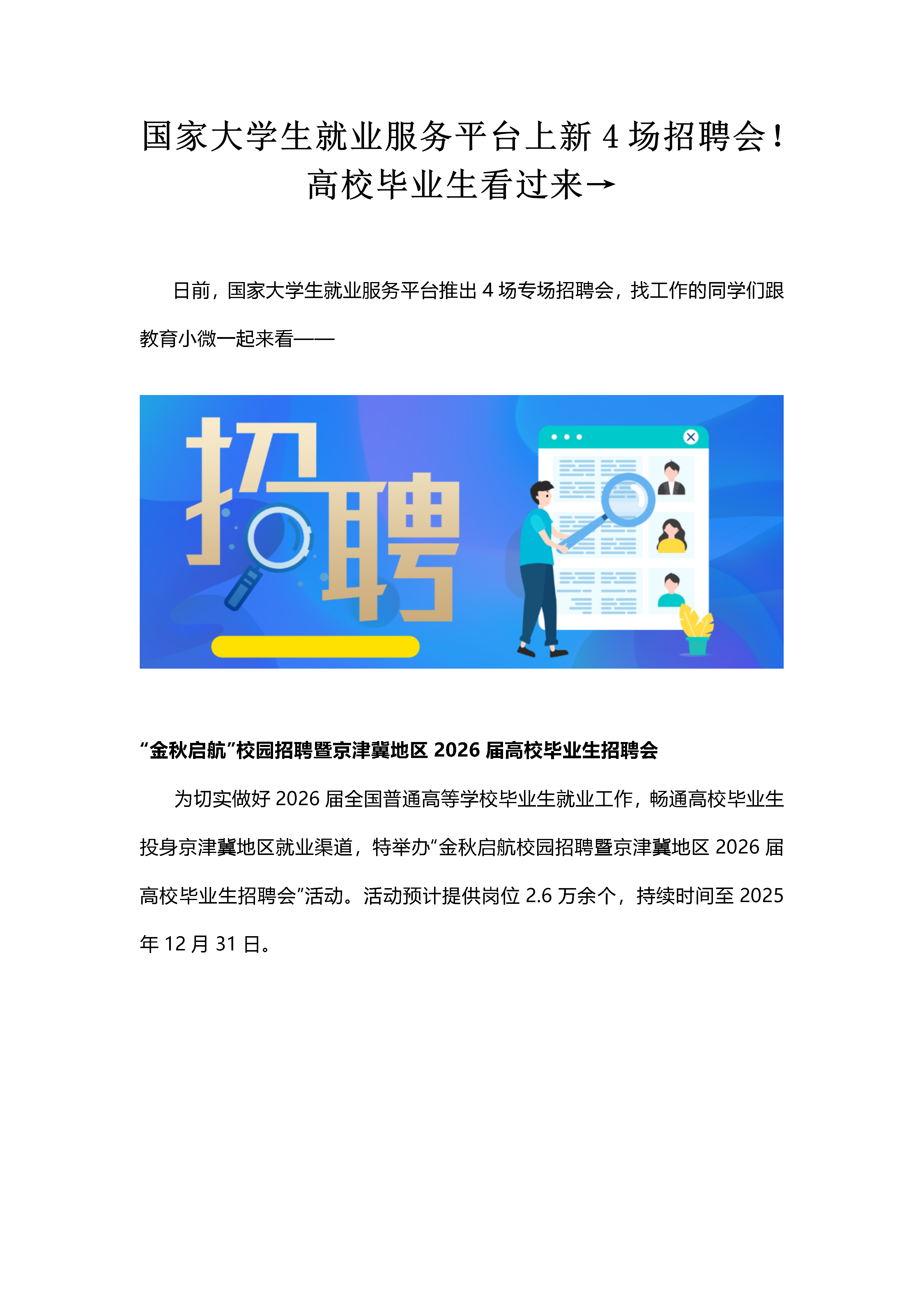 日前,国家大学生就业服务平台推出4场专场招聘会,找工作的同学们跟教育小微一起来看——