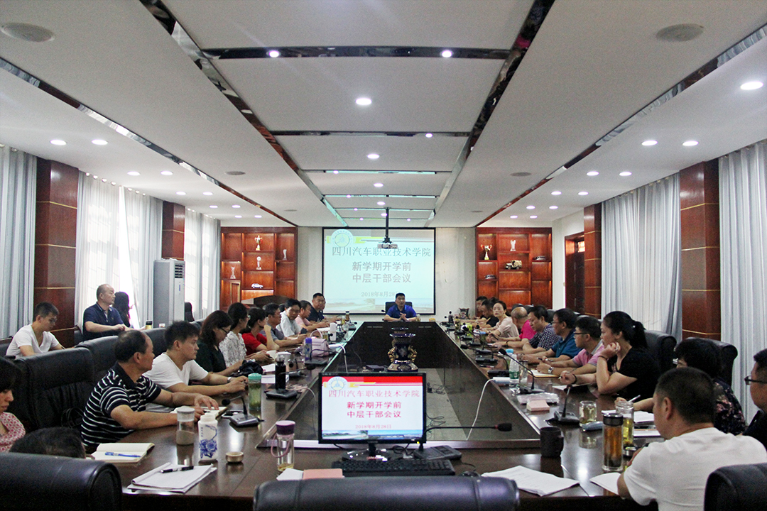 2018年8月28日上午,四川汽车职业技术学院召开了新学期中层干部会议。会议由董事长、院长邓斌教授主持,全体中层以上干部参加了会议。首先,邓斌院长部署了本学期工作的三大任务,并希望全体中层以上干部团结协作、听从指挥、坚决执行,使学校工作再上一个新台阶。第一,进一步更新观念,内涵和外延发展并举。他讲到,学校近年来在师资、硬件、教学及管理等内涵建设方面取得了优异的成绩,同时也为学校规模发展奠定了坚实…