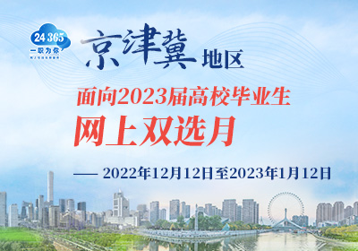 京津翼地区面向2023届高校毕业生网上双选月活动时间:2022年12月12日至2023年1月12日网址链接:https://www.ncss.cn/student/jobfair/fairdetails.html?fairId=JspjnbSLtCBdDfF3Akf2Zo参会方式:直接点击链接参会即可